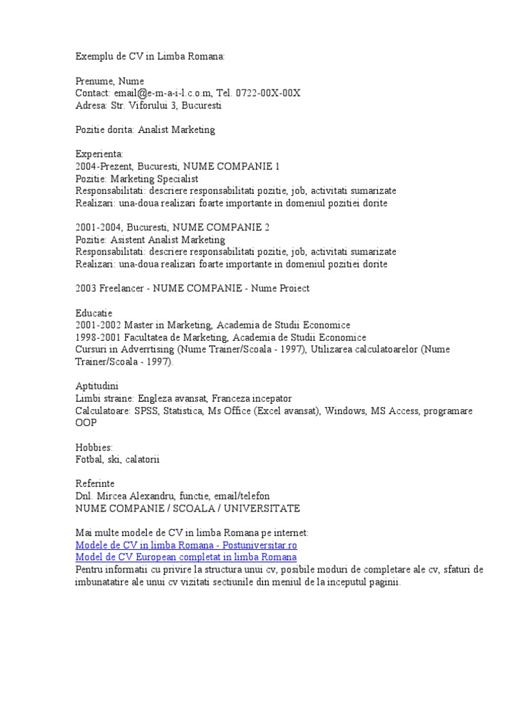 Get Curriculum Vitae Model In Limba Romana. Un cv cu adevarat puternic este cel care te deosebeste fata de ceilalti candidati si care iti ofera un start avantajos in competitia pentru rolul pe. Abilitatea de a vorbi o limbă este cea mai importantă.